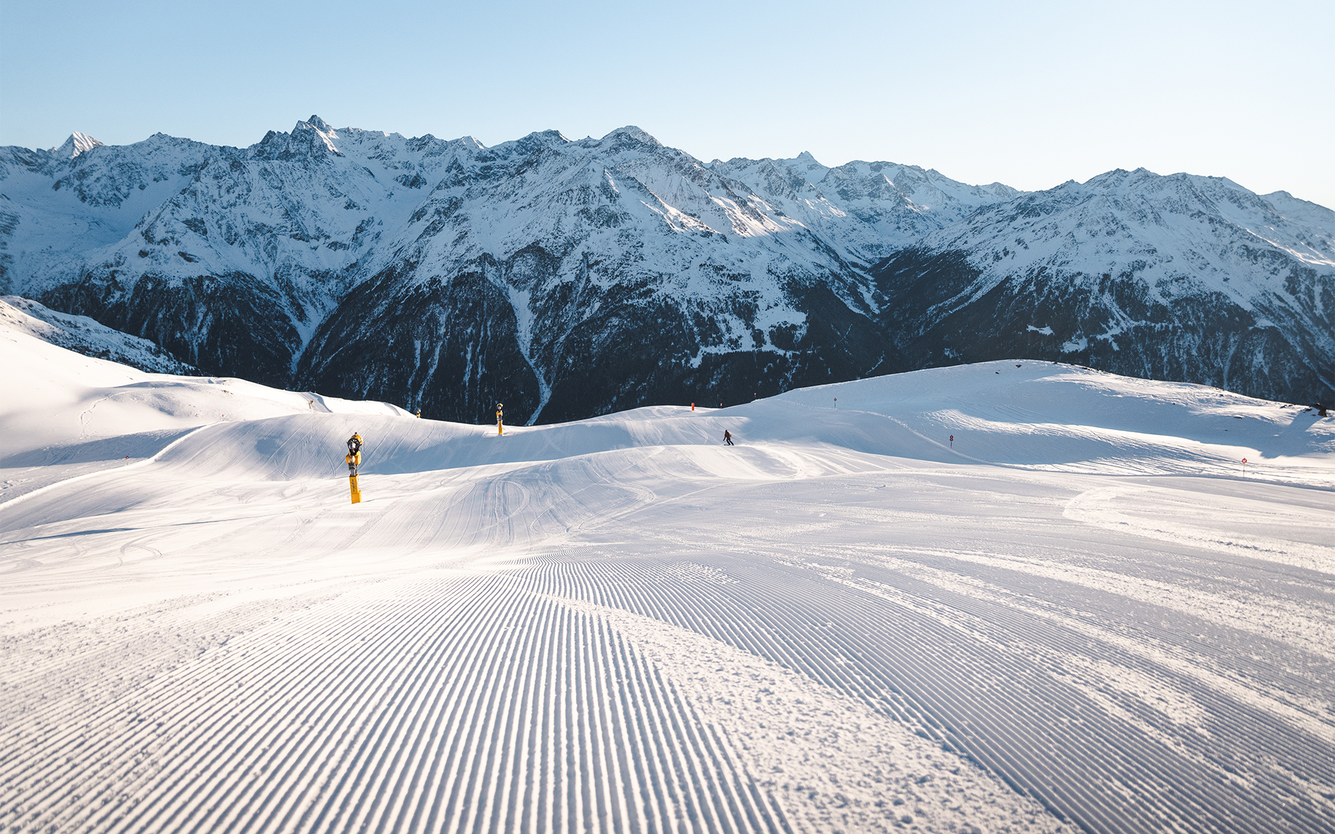 In addition to 144 kilometers of perfectly groomed pistes, you can easily reach three 3,000-meter peaks – the Schwarze Schneide, Tiefenbachkogl and Gaislachkogl – by cable car and whizz back down into the valley against a dream backdrop. With two glaciers and an altitude of 1,350 to 3,340 m, the snow-sure ski area guarantees the finest turns on the slopes from October to May.